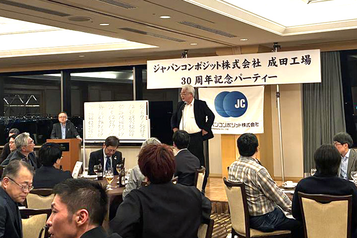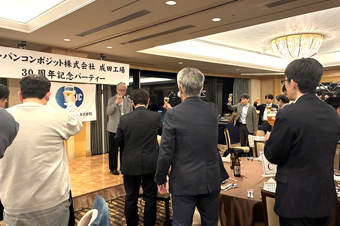2月13日(金)に弊社成田工場30周年記念パーティーを開催いたしました。 成田空港を臨むホテルで夜景と食事を楽しみ、また設立当初の社員より工場立ち上げから今日までの苦労話を聞き、改めて事業の発展を参加者一同誓いました。